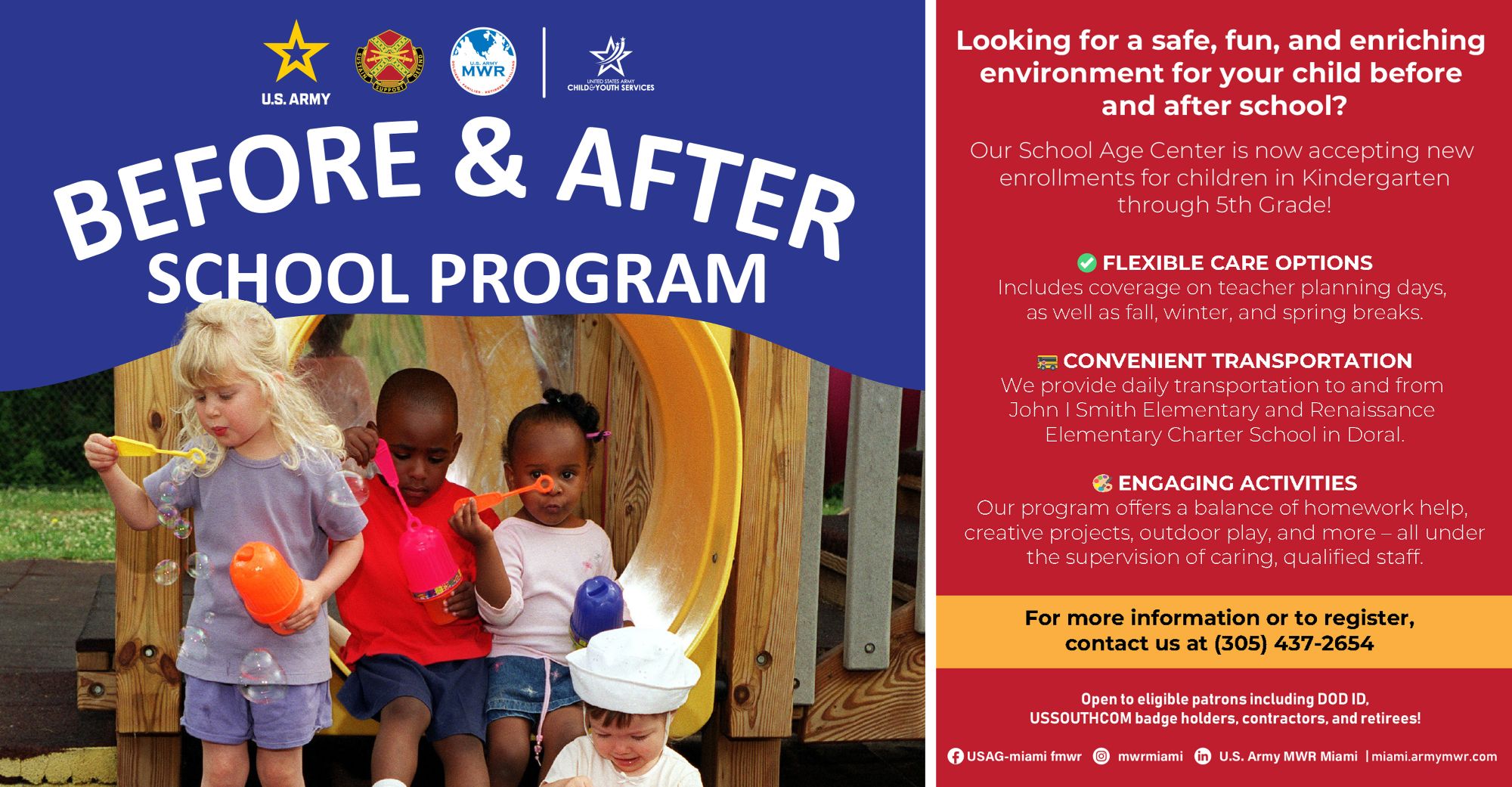The School Age Center is now accepting new enrollments for Kindergarten through 5th Grade students.