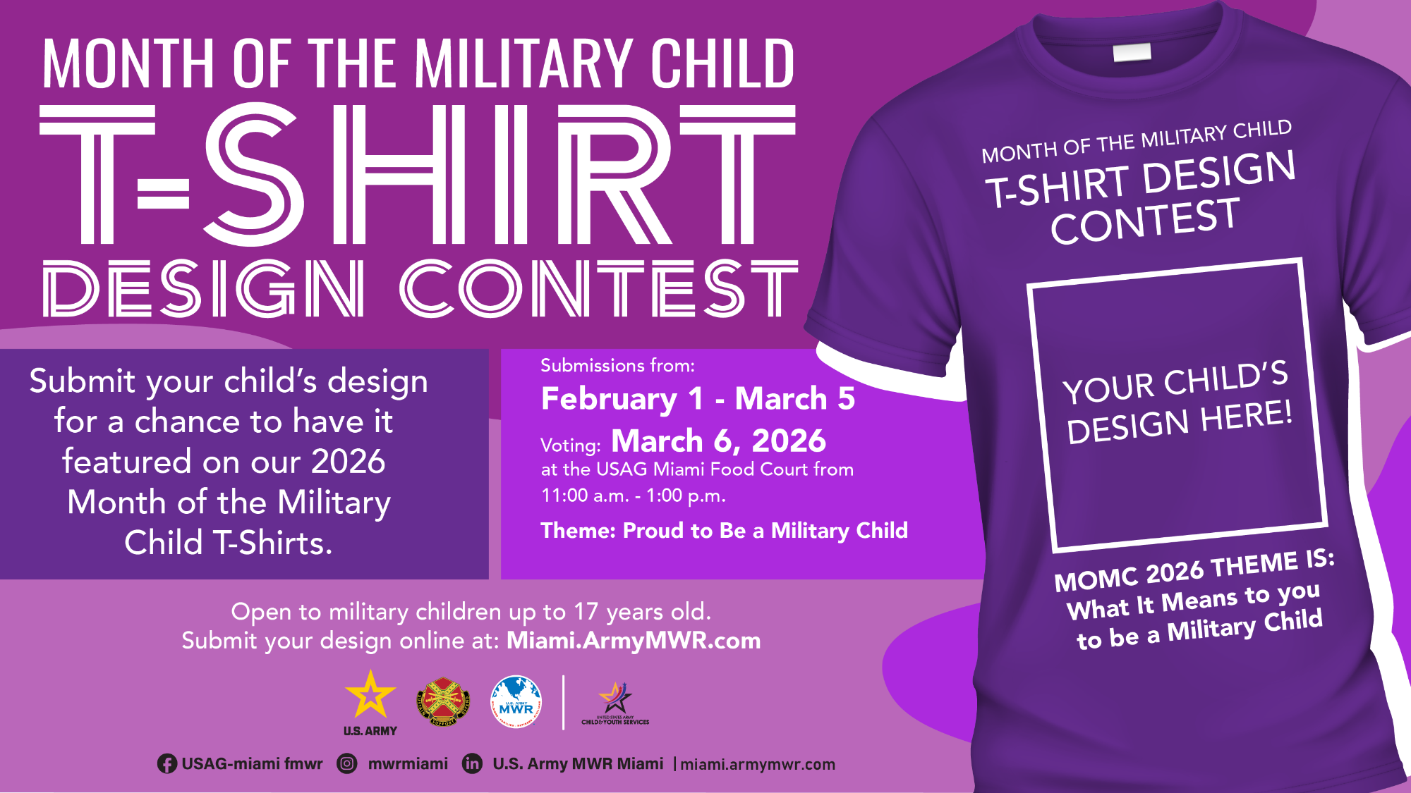 Design a t-shirt that represents this year's theme. Submit your child’s design for a chance to feature as our annual Month of the Military Child t-shirts!